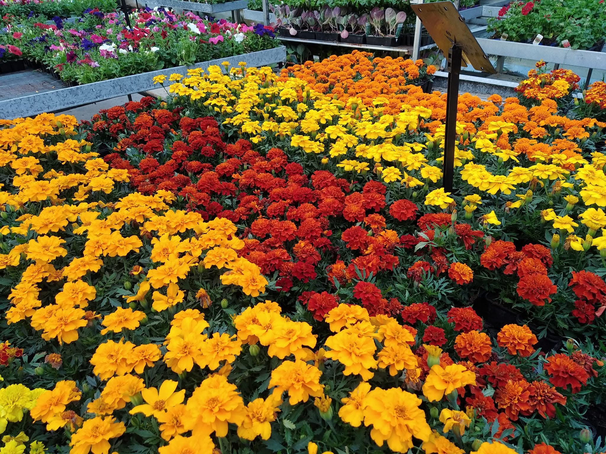Nous assurons la production de nombreuses plantes sur 4 000m² de serres. Nous produisons entre autre géraniums, plantes à massif, plants de légumes, chrysanthèmes, potées fleuries, plantes aromatiques ou encore suspensions florales.